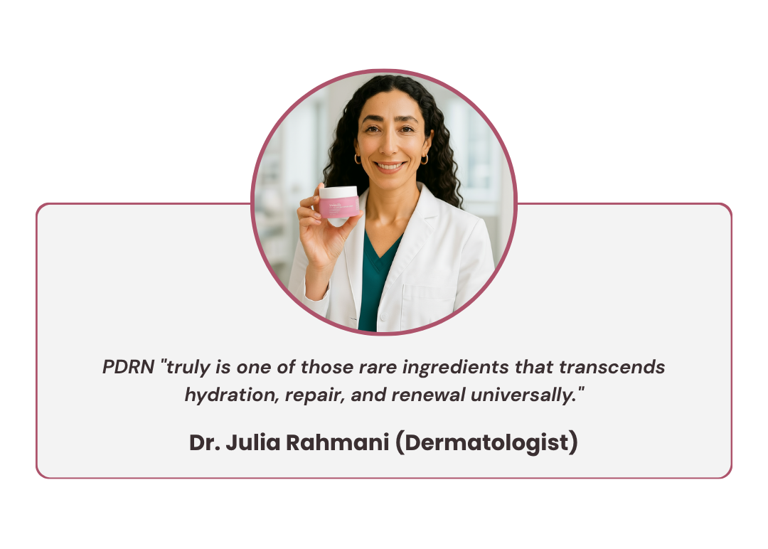 For decades, Korean dermatologists have used PDRN to support skin’s natural repair signals — helping improve firmness, smoothness, and overall resilience.